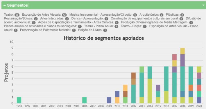 Quanto cada uma utilizou de verba da lei Rouanet, ano a ano, e em que segmentos aplicou